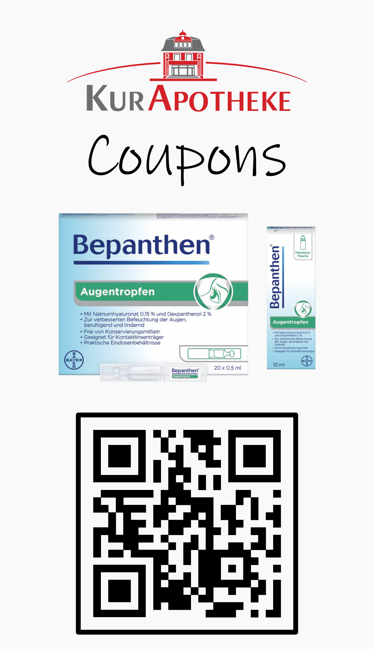 Beim Kauf von Bepanthen® Augentropfen oder Bepanthen® Augentropfen intense erhalten Sie einen Sofort-Rabatt in Höhe von 3 €. Der Rabatt wird beim Einkauf automatisch an der Kasse abgezogen. Nur ein Rabatt pro Einkauf. Nicht mit anderen Aktionen kombinierbar. Vervielfältigungen werden nicht akzeptiert. Eine Barauszahlung erfolgt nicht. Nur in teilnehmenden Apotheken innerhalb Deutschlands.