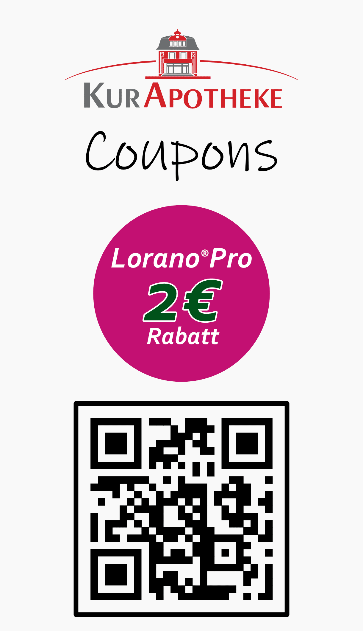 Beim Kauf von Lorano®Pro 18 St. erhalten Sie einen Sofort-Rabatt in Höhe von 2 €. Der Rabatt wird beim Einkauf automatisch an der Kasse abgezogen. Nur ein Coupon pro Packung einlösbar. Nicht mit anderen Aktionen kombinierbar. Vervielfältigungen werden nicht akzeptiert. Eine Barauszahlung erfolgt nicht. Nur in teilnehmenden Apotheken innerhalb Deutschlands. Aktionskontingent ist nur begrenzt verfügbar.